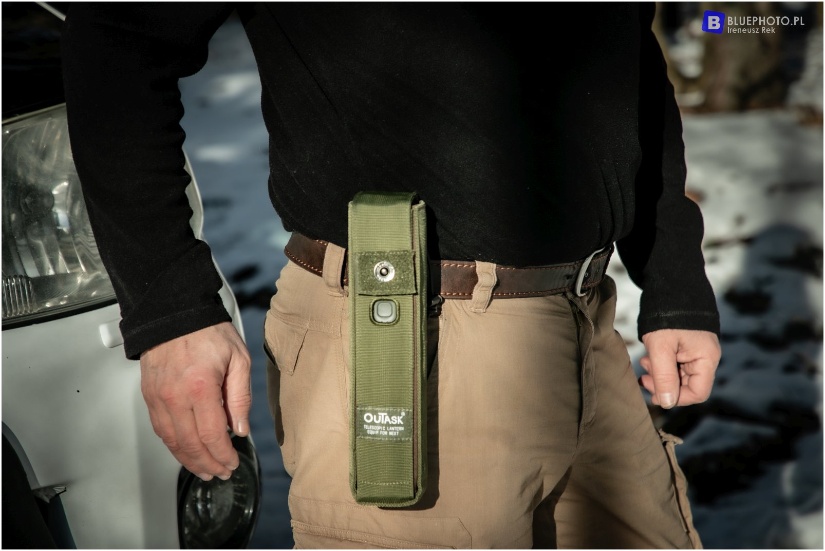 Co ciekawe, producent zdając sobie sprawę że sprzęt jest ciężki proponuje nam do niego pokrowiec. To można przypiąć do paska, daje się używać wraz z ta obudową albo łatwo wyciągać. Na kemping do lampki można założyć specjalną silikonowe dokładki rozpraszające w kolorze białym, pomarańczowym i czerwonym.
