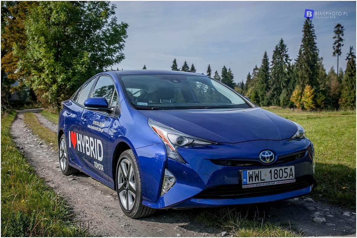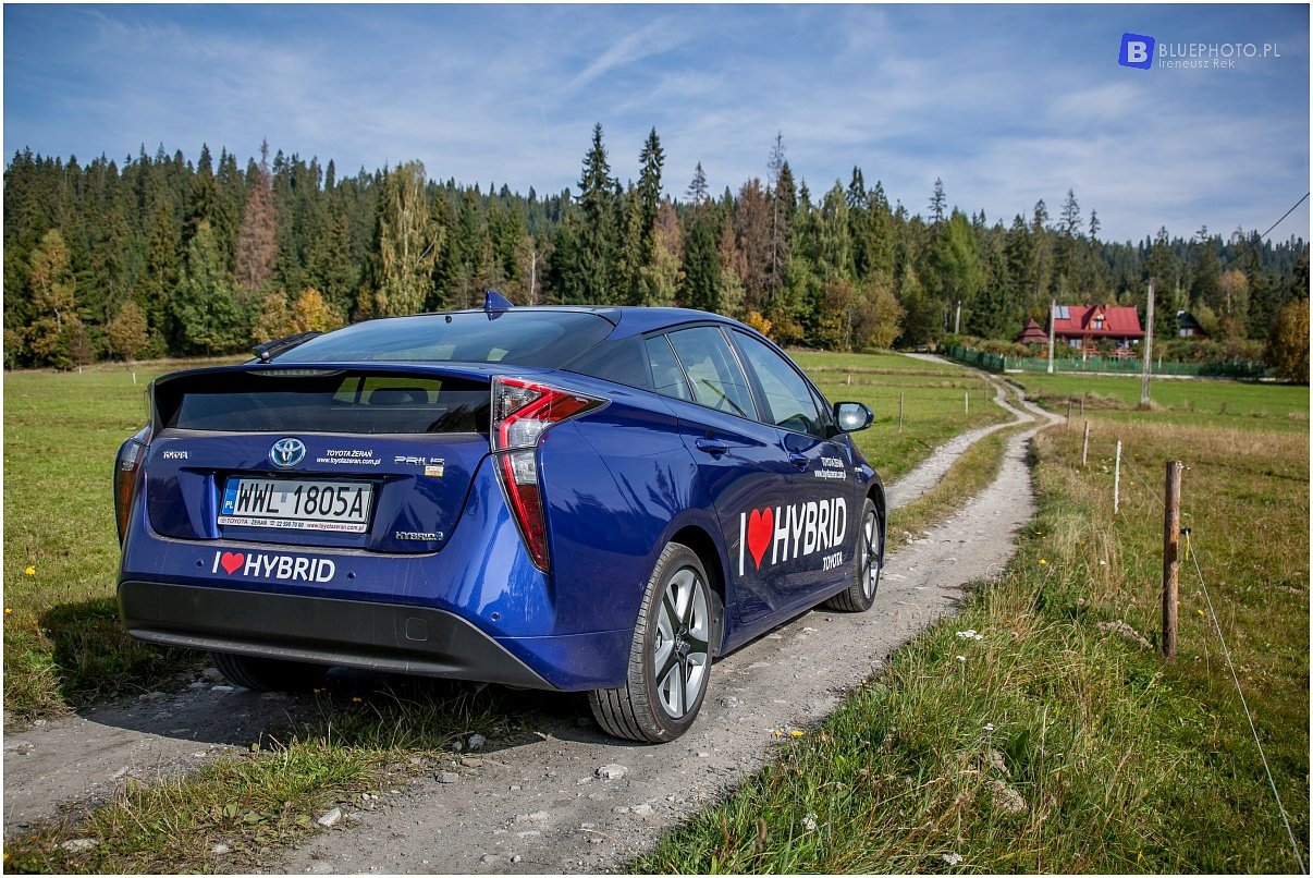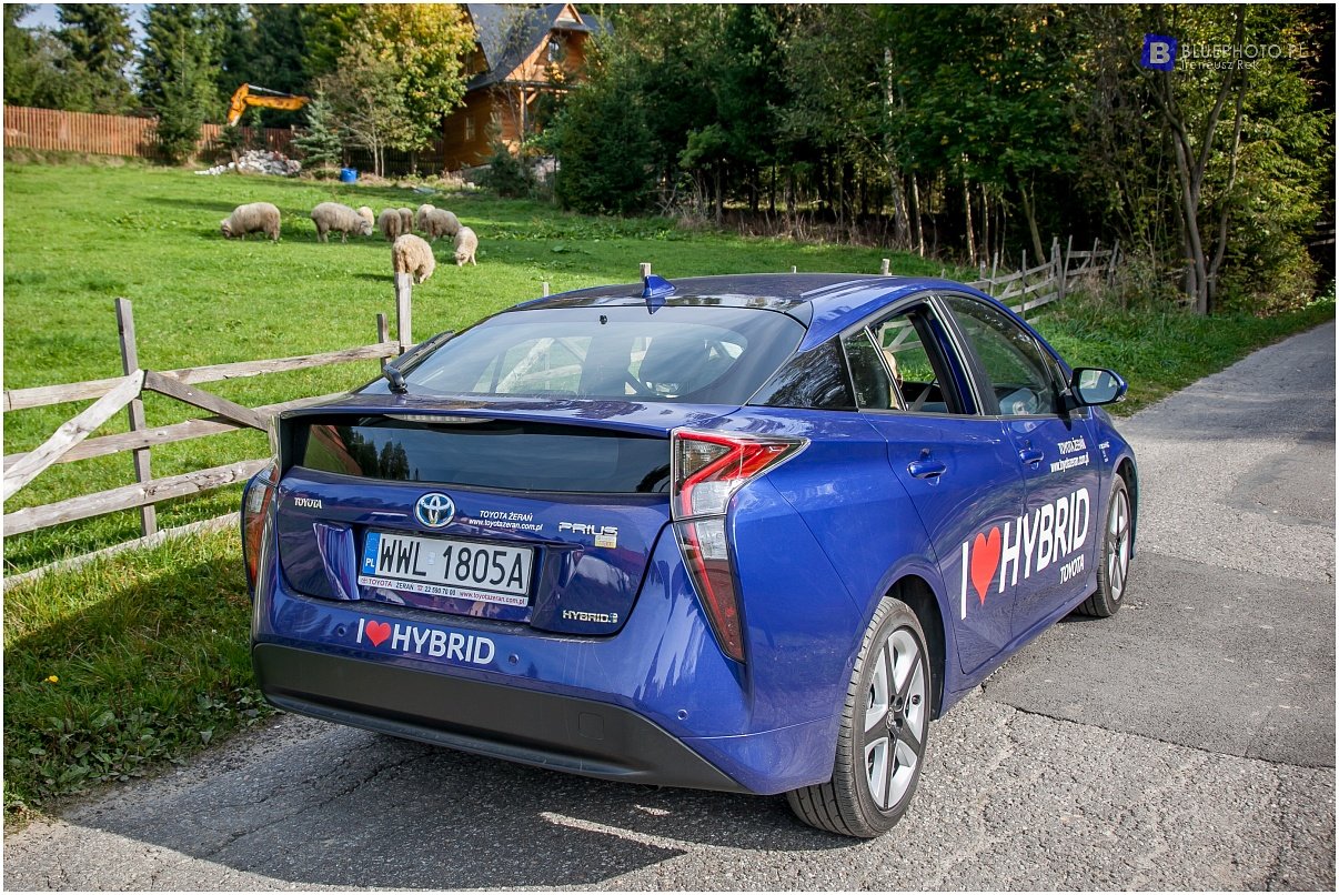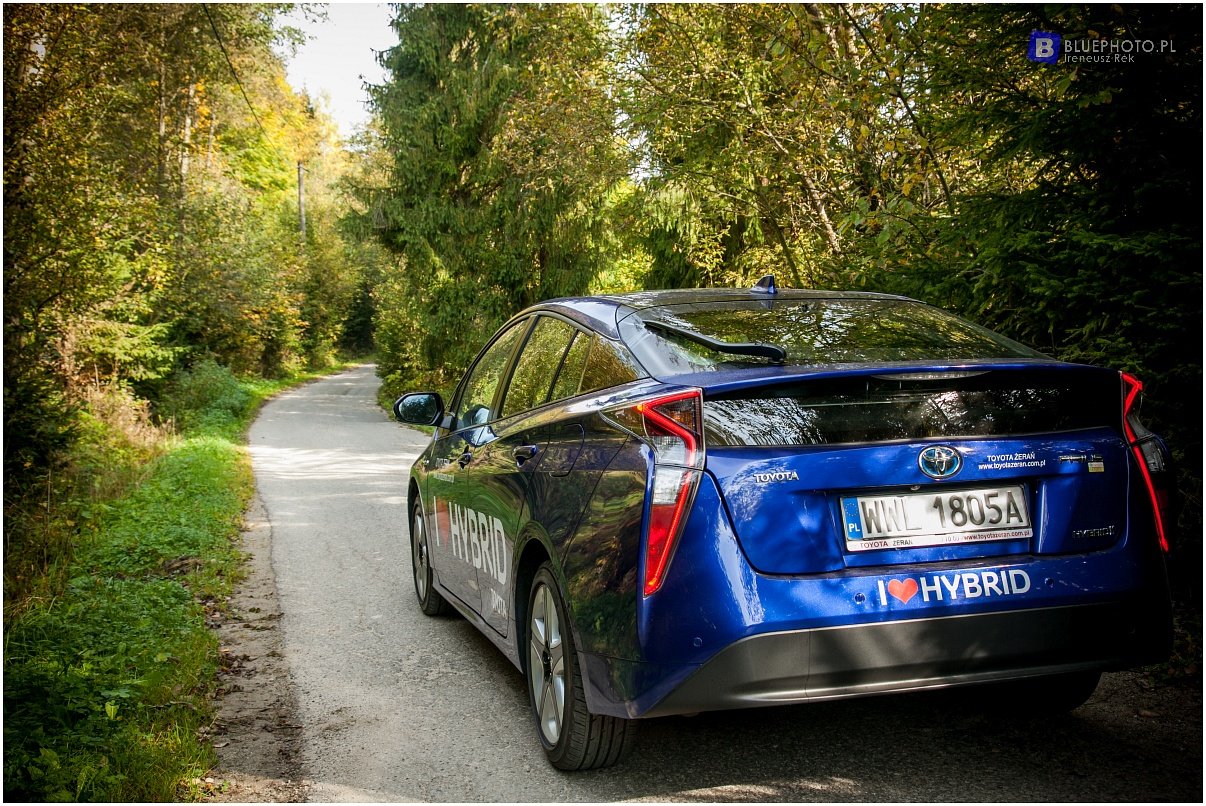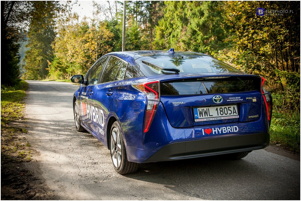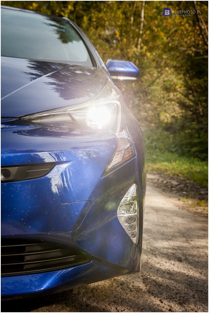 Kilka dni wcześniej, przy okazji przeglądu mojej Toyoty Hilux miałem okazję jeździć poprzednia generacją Priusa. To auto bardzo przypadło mi go gustu, oszczędne, ciche z fajnym dizajnem. Jednak w nowym modelu od razu widać postęp. Ładniejsze tylne klosze z ciekawa linia lamp, bardziej drapieżny przód, ta sama garbata sylwetka … Zmiany widać też wewnątrz: ładniejsza deska, z bardziej miękkiego tworzywa, zegary już nie monochromatyczne, o wyższej rozdzielczości, tylko ta konsola środkowa z białego tworzywa jak mydelniczka, które może pasuje do białego auta ale do ciemnoniebieskiego?