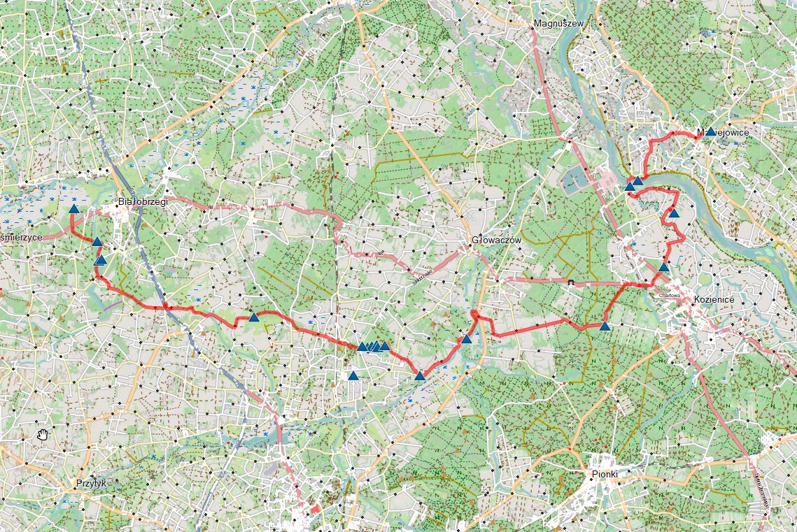 Dalsza trasa to sporo szutrów oraz asfalty, którymi dotrzemy do Nowego Kiełbowa, gdzie wiaduktem pokonać można trasę S7. Uwaga: droga przez las na trasie miejscami zarośnięta i może rysować lakier. Bardzo wymagający choć mało offroadowy jest fragment pomiędzy Grodziskiem a Adaminowem. Piaszczysta, leśna droga mocno obrośnięta jest tu akacjami. Planując podróż tędy trzeba liczyć się z rysami lub zabrać ostra maczetę lub karczownik. Ja używam narzędzia produkowanego przez firme Fiskars, każdemu mogę je polecić.