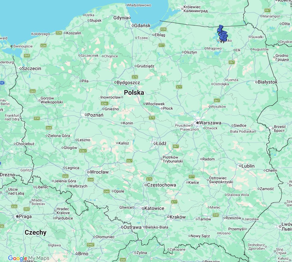 Nasze trasy powoli układają się w jedną, większą całość. Marzy nam się offroadowa pętla wokół Wielkich Jezior i jeszcze dalej. Gotowe odcinki trasy to te poprowadzone pomiędzy Prawym Lasem pod Suwałkami a Szarejkami niedaleko Olecka oraz dalej z Szarejek do Kruklanek. Obecna, stanowi dalszą jej część i biegnie z Kruklanek do Węgorzewa. Czy jest trudna? Nie, to urokliwy szlak poprowadzony szutrowymi drogami gdzie trudności z przejazdem spotkają Was w niesprzyjającej porze roku (deszcze, roztopy). Długość trasy to 90 kilometrów a czas przejazdu około sześciu godzin.